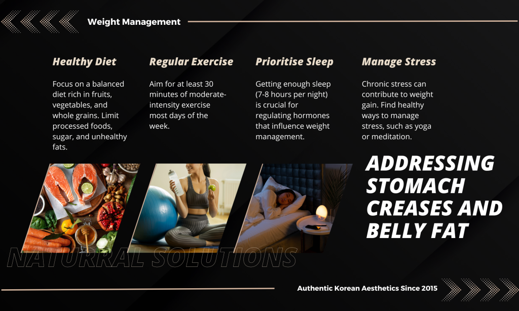 True skin health starts from the inside. Addressing your overall body composition and nutritional intake directly impacts the quality and tightness of your abdominal skin, complementing your topical treatments.