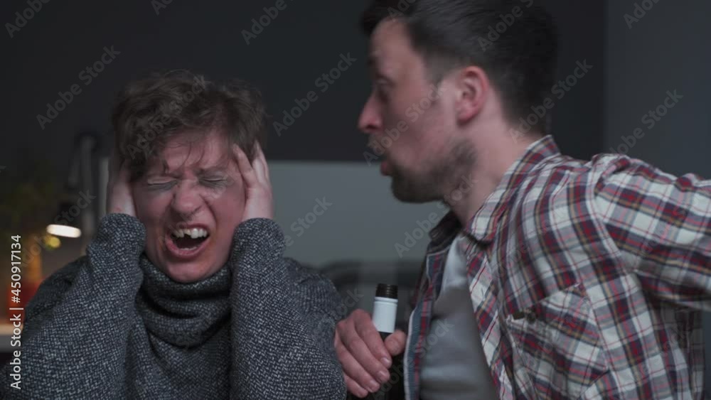 Find inspiration with this unique man 'drinking on medication' choked and punched wife after waking her up illustration, crafted to provide a fresh look for your background.