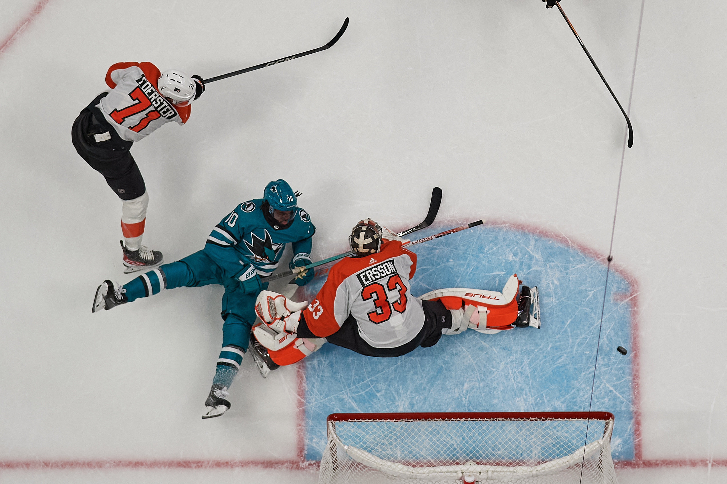Experience the crisp clarity of this stunning flames edge sharks to end 5-game skid image, available in high resolution for all your screens.