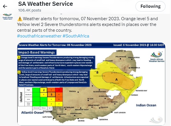 The SAWS pinpointed the timeframe for the highest risk between 16:00 and 22:00 SAST. During this window, residents should anticipate rapid onset of extreme weather, meaning conditions can deteriorate from sunny to severe in less than an hour.