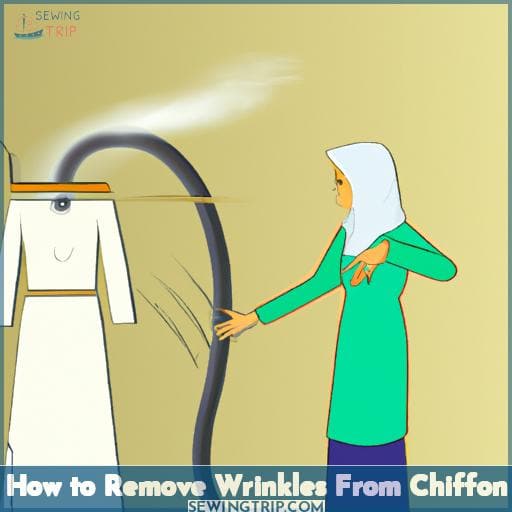 Simply hang your chiffon garment on a sturdy hanger. Next, hang it inside the bathroom while you take a very hot shower. Ensure the garment is far enough away from the direct spray of water to prevent soaking it.