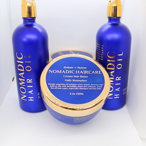 The term "Nomadic Hair Oil" defines a premium, highly concentrated formulation built on two core principles: high efficacy and travel-ready design. Historically, nomadic tribes utilized potent, localized botanicals (like desert date oil or shea butter) to shield their hair and skin from brutal environmental shifts.