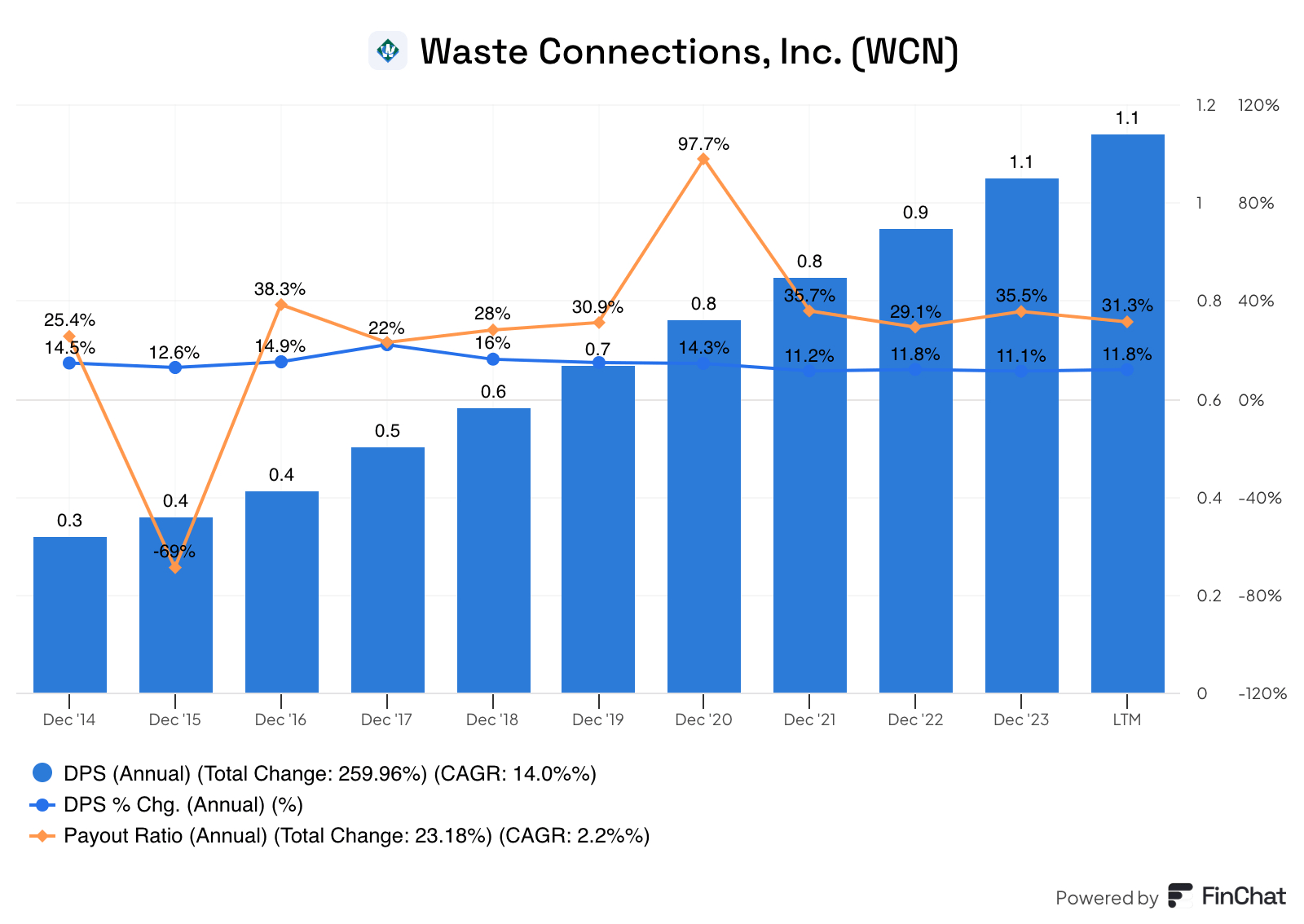 2. What is the historical dividend growth of Waste Connections?